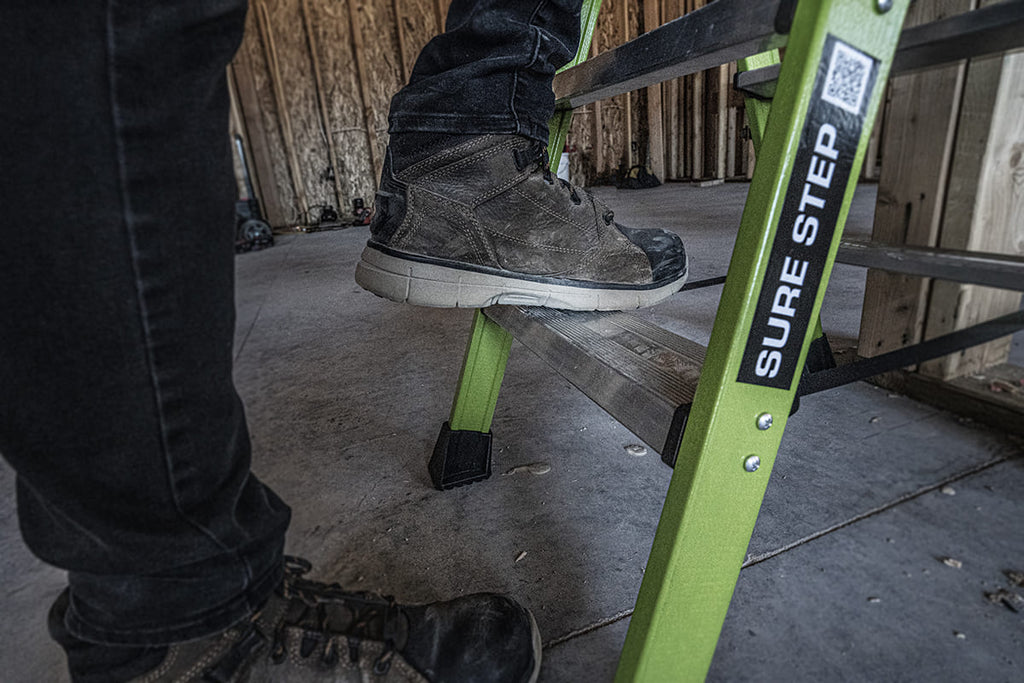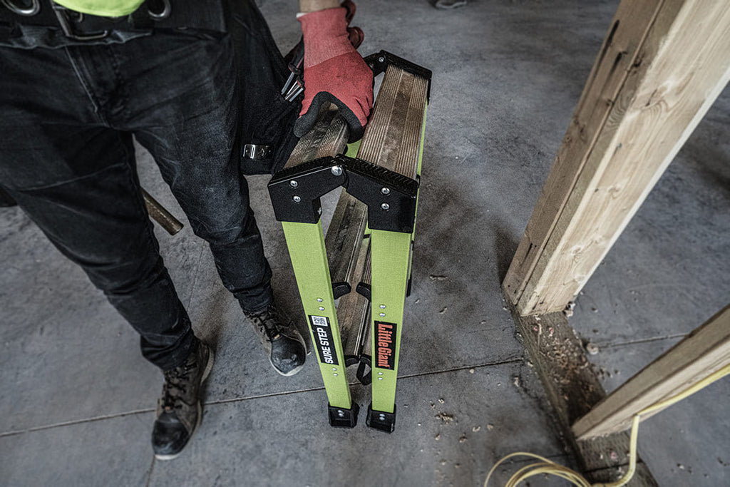 When you need a step stool that’s as fast as you are, the Little Giant® Sure Step™ has your back. This non-conductive, fiberglass step stool is as sturdy as it is lightweight, and the nylon spreader straps make folding the Sure Step a one-handed, simple process. The Sure Step meets or exceeds all OSHA and ANSI standards and is rated Type IAA to hold 375 lbs (170 kg).