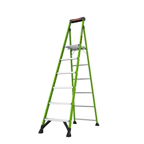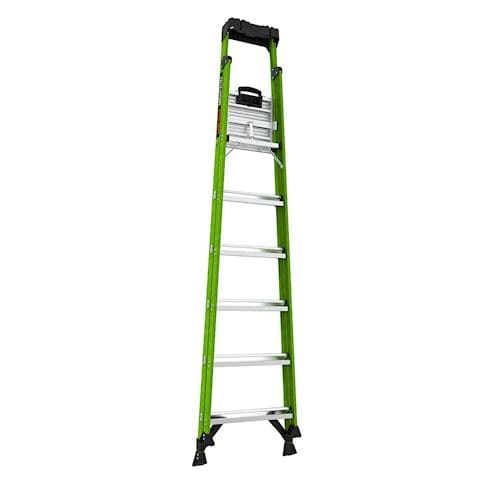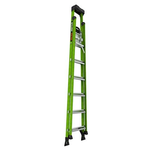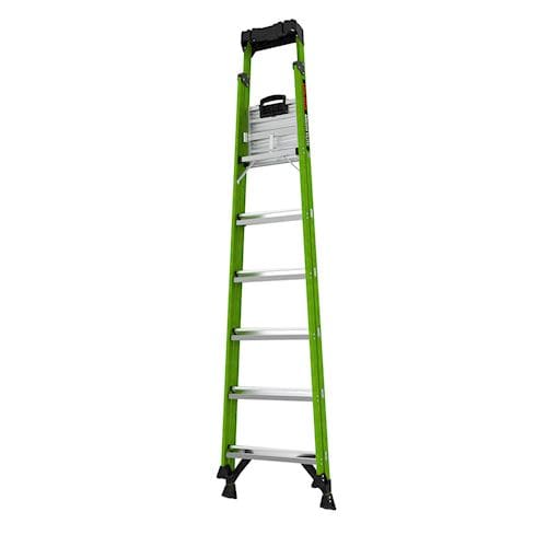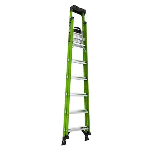 The MightyLite™ 2.0 (8') from Little Giant Ladder Systems is the ultimate lightweight stepladder, built for industrial and general-purpose tasks. It features a slim storage profile for easy handling, non-conductive fiberglass construction for electrical safety, and an innovative Ground Cue® system for added security. With a load capacity of 375 lbs, it complies with OSHA and ANSI standards, ensuring safety and reliability in professional environments. The extra-wide steps and tool tray enhance comfort and convenience, making this ladder a must-have for professionals.