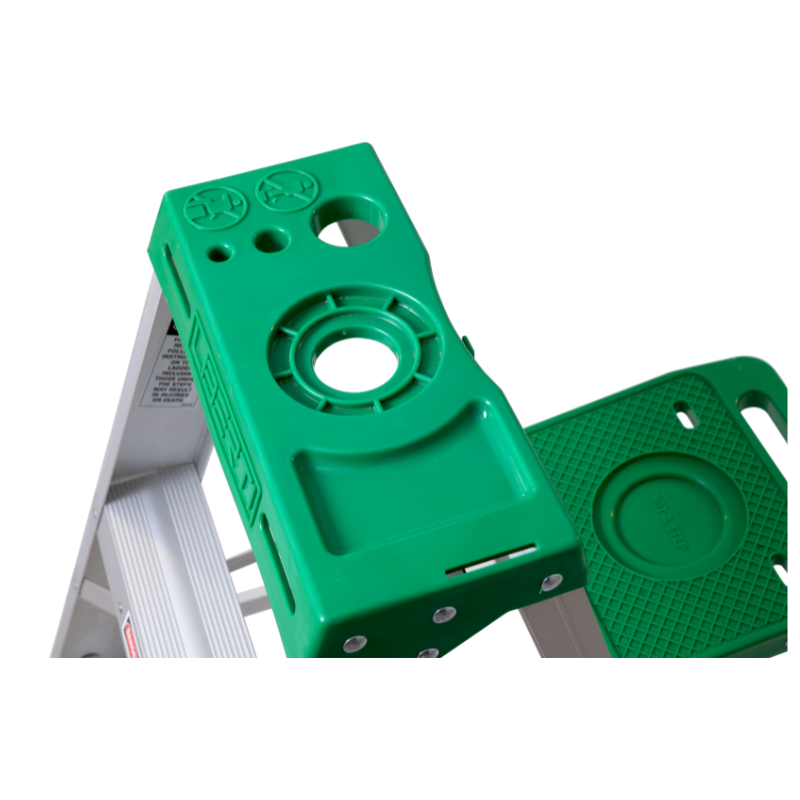 The Liberti 8ft Medium Duty Aluminium Step Ladder is designed for convenience and safety. Equipped with a moulded copolymer utility top, it securely holds tools and has a hook for hanging buckets. The 3-inch wide slip-resistant aluminium steps ensure safe climbing, while extruded braces provide extra stability. Its fold-down utility tray is perfect for holding paint accessories, toolboxes, and more. With slip-resistant safety shoes, this ladder is ideal for home and professional use.