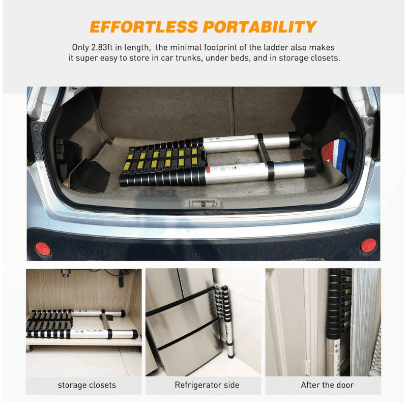 Telescopic Design: Allows the ladder to extend and retract easily for compact storage.