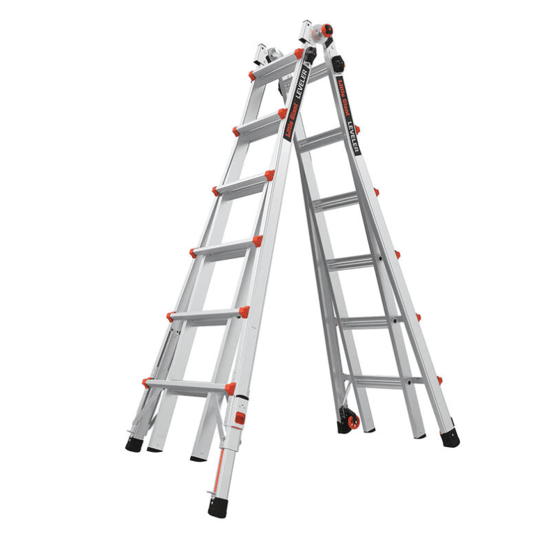 Using a ladder outdoors has always had its challenges, but the Little Giant® Leveler™ is an adjustable leg ladder that changes that experience. Whether you work on uneven ground or set up your ladder on a staircase, the Leveler can handle it without the need for a leveling accessory. Meeting or exceeding all OSHA and ANSI standards, the Leveler is rated to hold 300 lbs. in all configurations. In its A-frame position, this adjustable leg ladder will hold 300 lbs. on both sides.